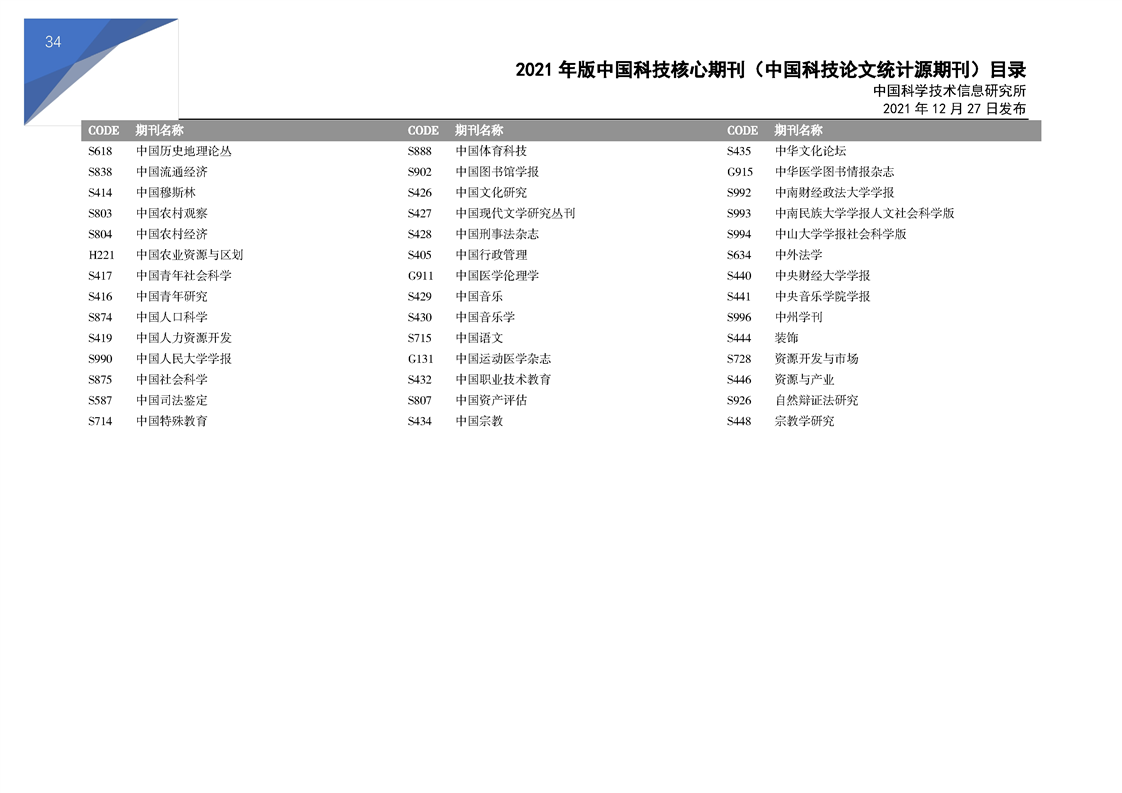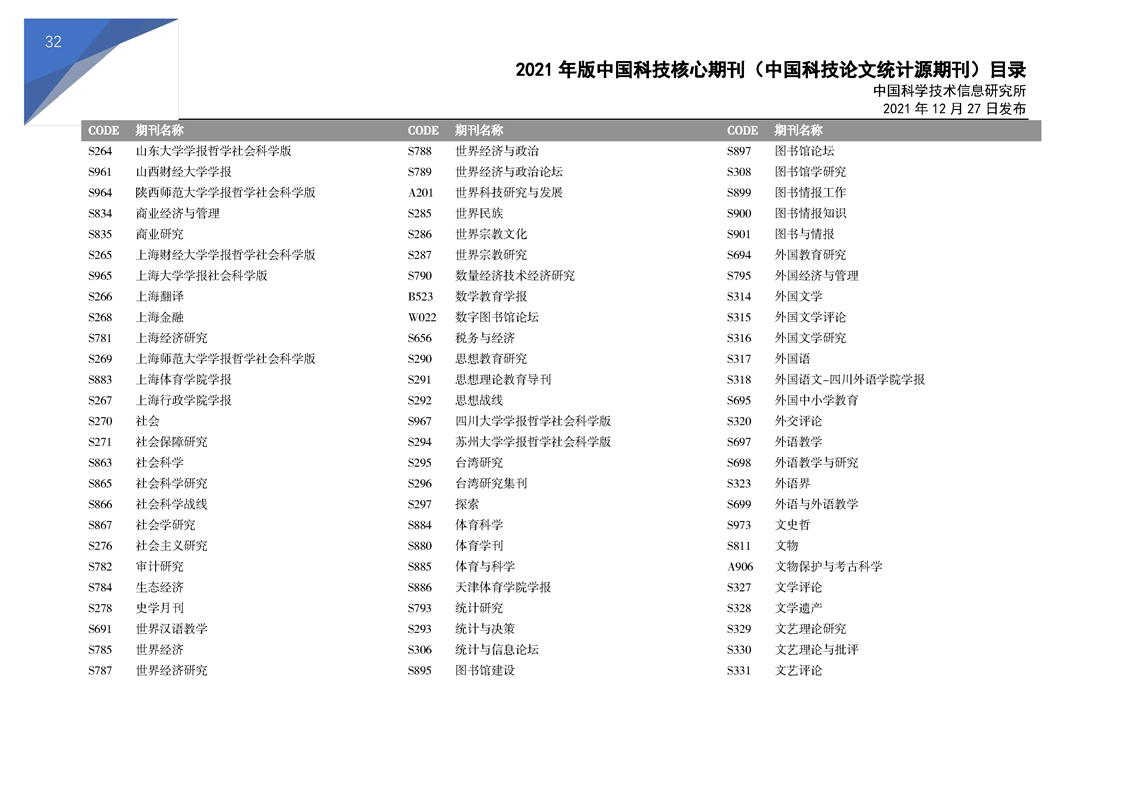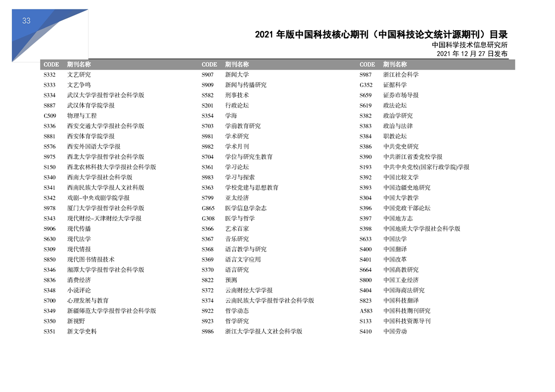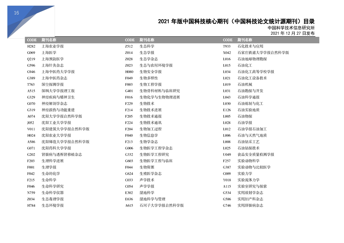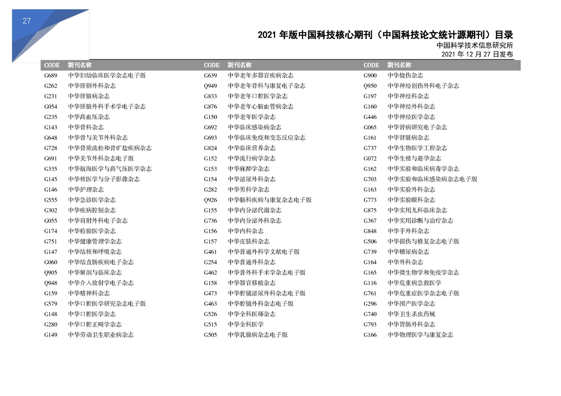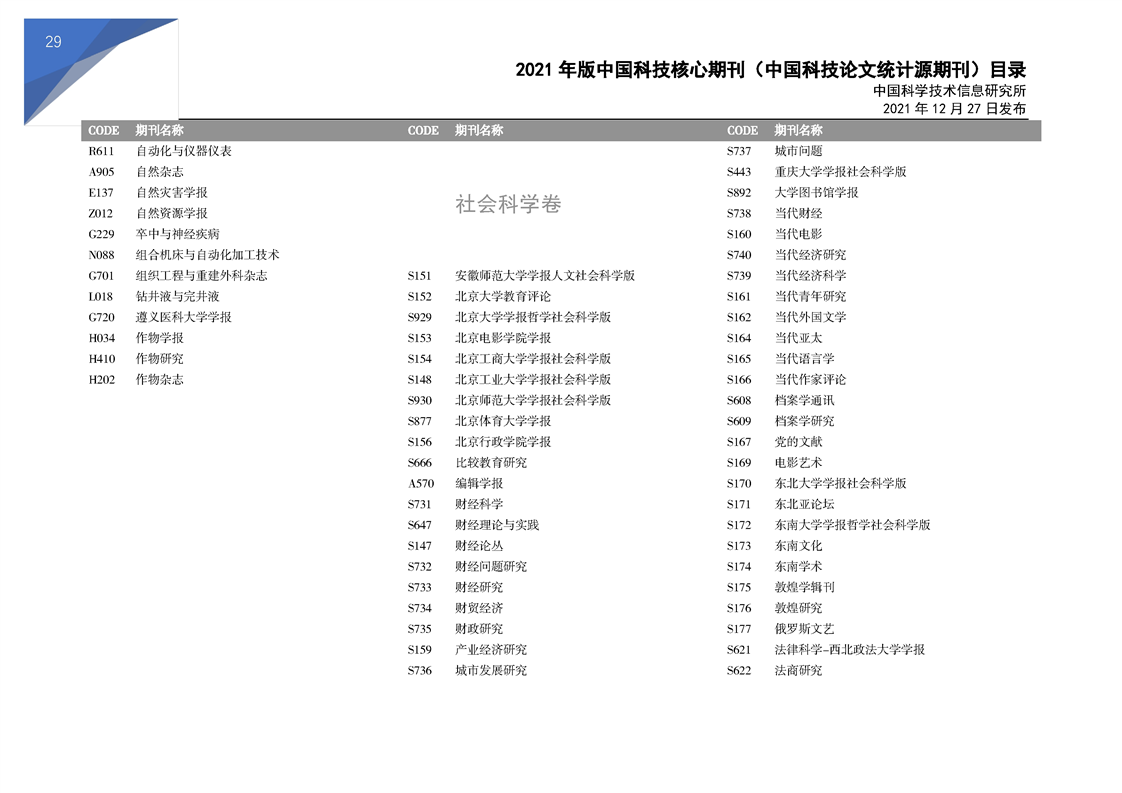 2021版科技核心期刊目录