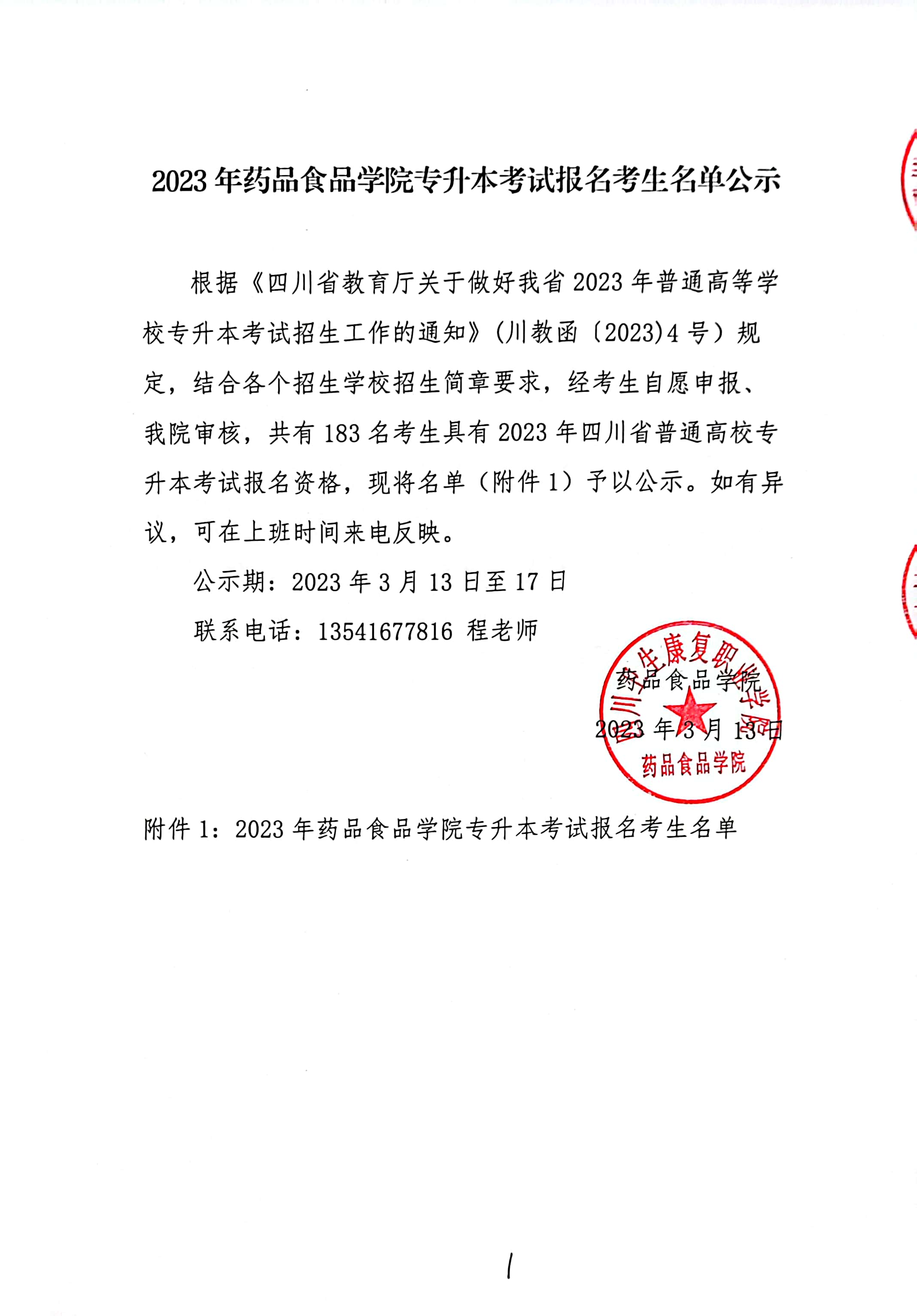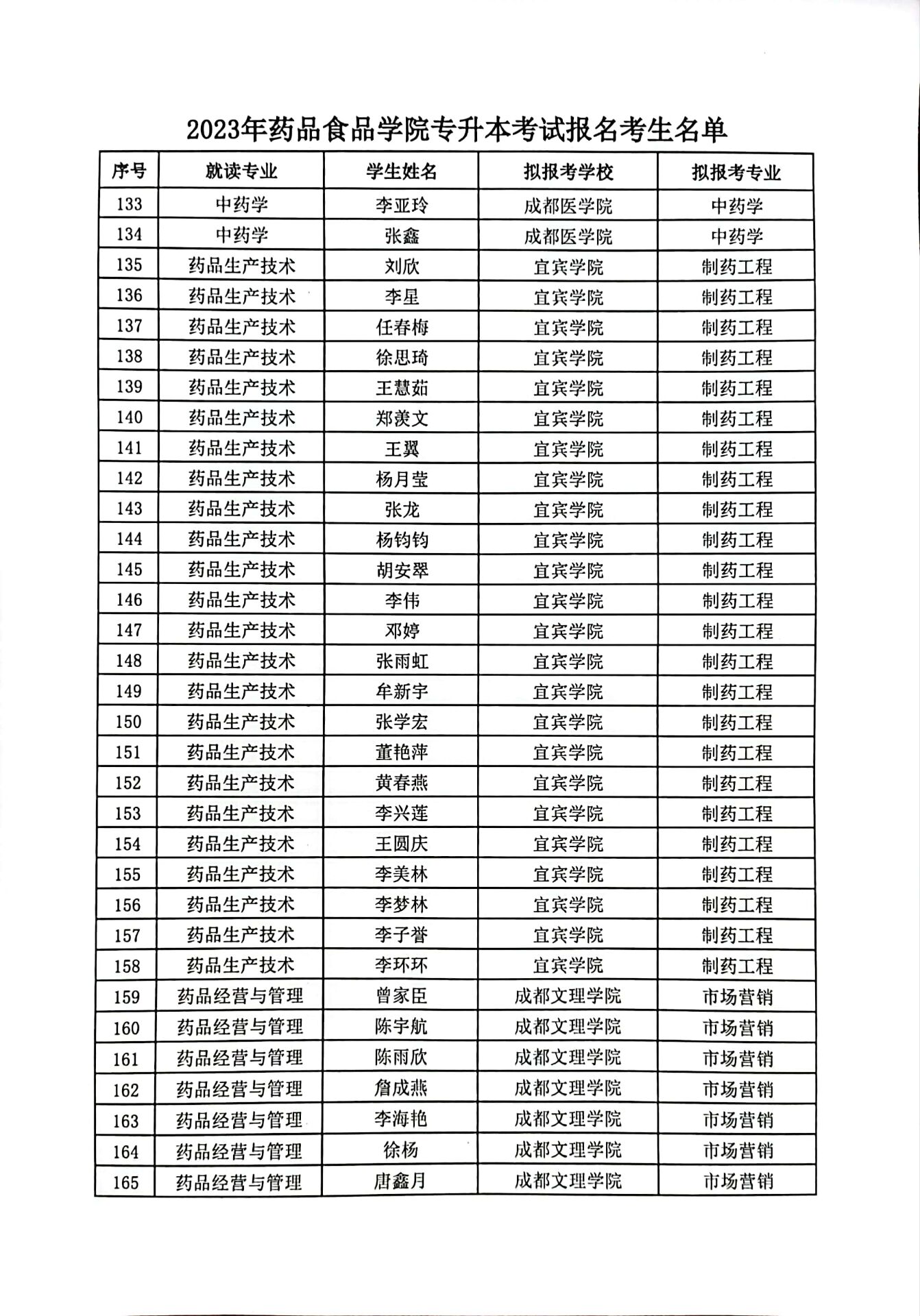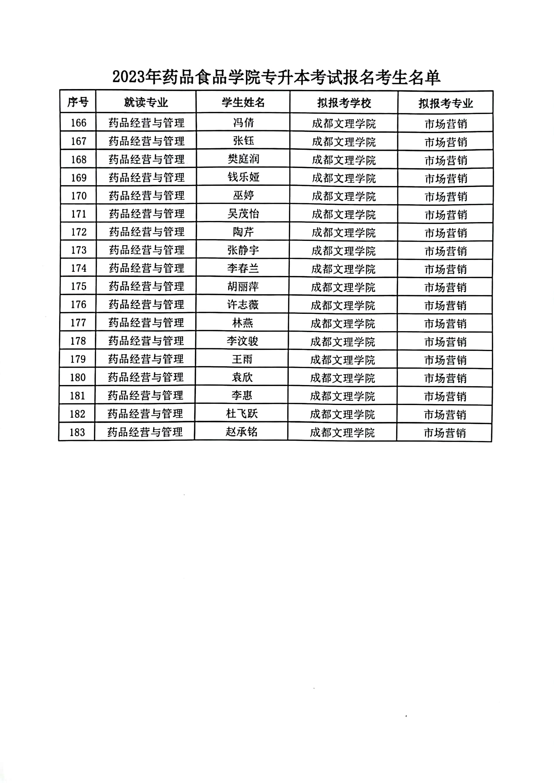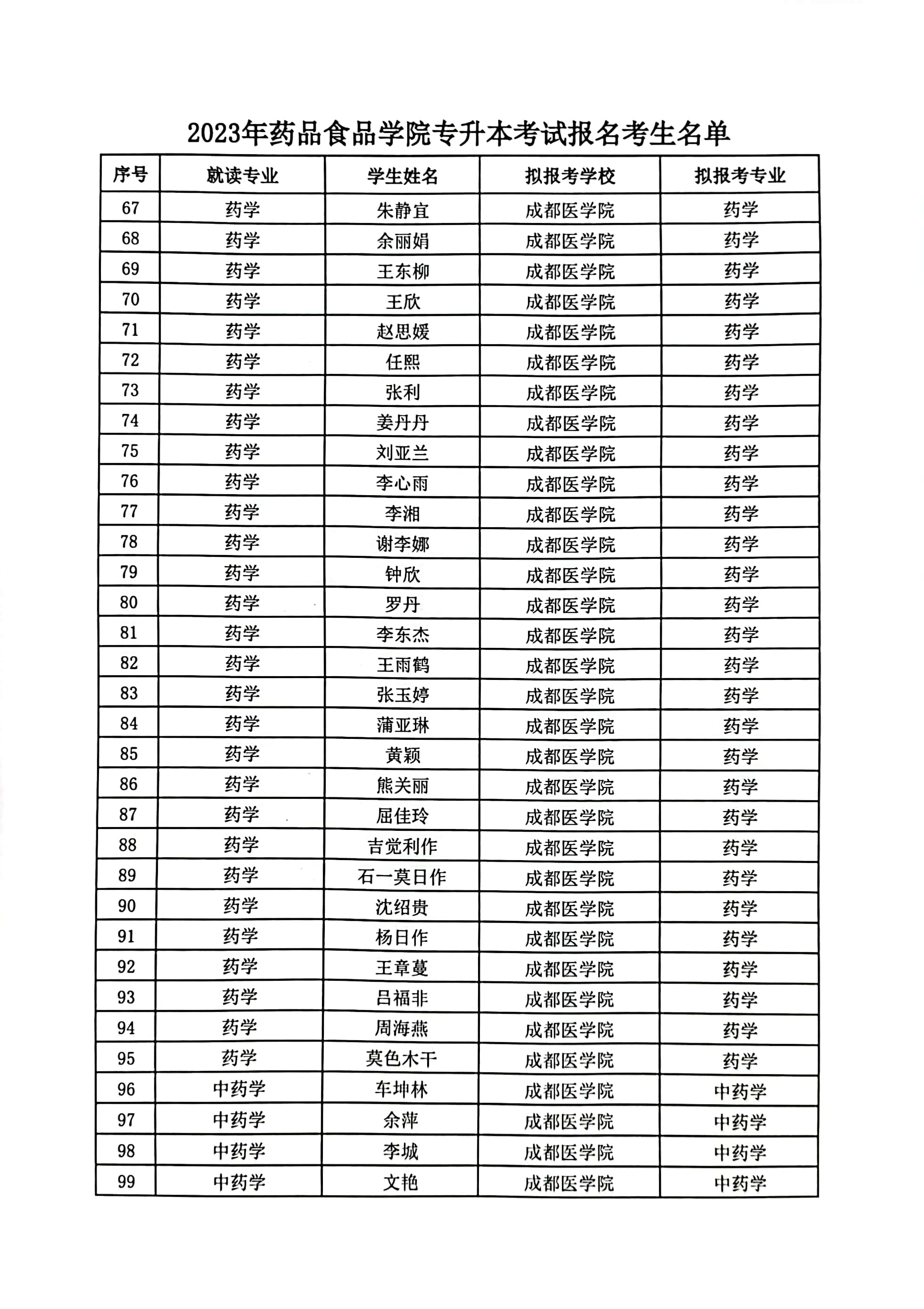 2023年药品食品学院专升本考试报名考生名单公示