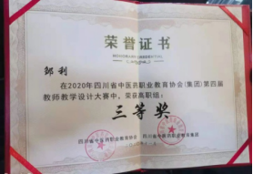 近年来,药学系教师先后获得各种奖项28项(国家级12项),包括:“全国十佳青年临床药师”1项、“天府万人计划”1项,2013、2015年自贡市说课比赛二等奖、一等奖,2014年获“凤凰创壹杯”全国职业院校信息化教学大赛三等奖,2015年获全国中等职业学校医药卫生类专业“创新杯”教师信息化教学设计和说课大赛一等奖,2017年获全国食品药品职业教育药学类专业云课堂比赛三等奖,2018获年四川省中医药教育协会高职组说课比赛一等奖,自贡市人民政府教学成果奖二等奖,2019年获全国食品药品职业教育微课比赛二等奖1项、三等奖2项,获全国临床创新与发明大赛三等奖1项。2020年获全省职业院校教师教学能力大赛二三等奖各1项,获四川省中医药职业教育协会教学设计比赛三等奖1项,获全国临床创新与发明大赛三等奖1项。2021年荣获“黄炎培职业教育杰出教师奖”1项、“四川省卫生健康系统先进个人”1项、首届全国教材建设先进个人四川省推荐提名1项等。