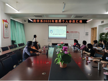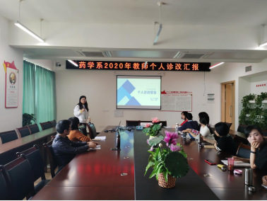 5月7日下午,药学系在2-A514举行了2020年第一轮教师个人诊改汇报。本次诊改汇报由药学系主任钟辉云主持,副主任李鹏杰、杨光丽及药学系全体教师参加。