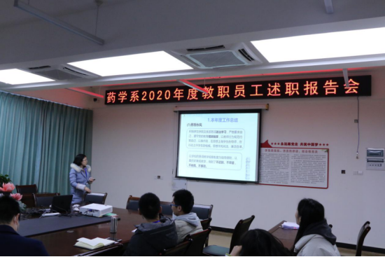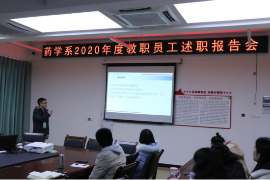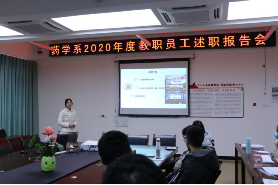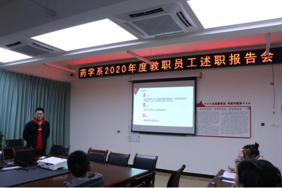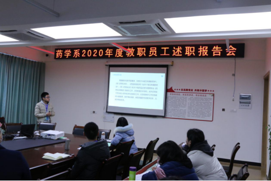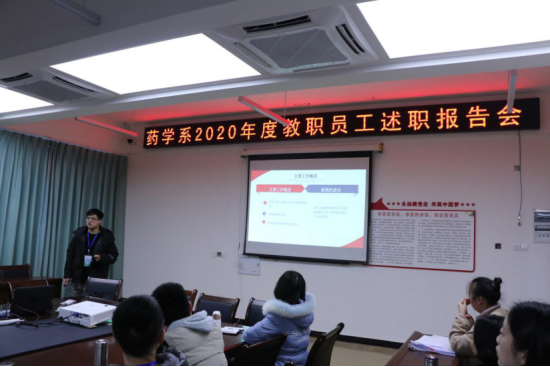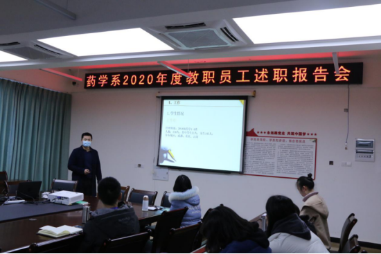 1月5日下午,药学系在2-A514举行了2020年度教职员工述职报告会。述职报告会由药学系主任钟辉云主持。