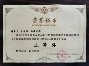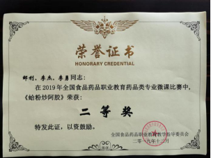 在刚刚结束的由全国食品药品职业教育教学指导委员会举办的2019年全国食品药品职业教育药品类专业微课大赛中,我院药学系选送的三个作品在全国六百多个参赛作品中脱颖而出,分获大赛二三等奖。其中,邹利团队的《蛤粉炒阿胶》荣获二等奖,罗阳团队的《心灵之窗的保卫者——滴眼剂》和钟春玉团队的《妊娠期用药的基本原则——孕妇用药知多少》荣获大赛三等奖。