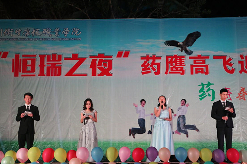 11月16日,taptap点点体育药学系在我院足球场隆重举办我系第一届“恒瑞之夜”药鹰高飞迎新晚会。出席本次晚会的嘉宾有院长曾晓奇、副院长黄昌平、江苏恒瑞医药股份有限公司四川区县域发展部经理王学海、川滇区人事经理罗兰、恒瑞三班班主任王芳颖以及自贡市药学会会长、自贡市第三人民医院药剂科主任徐蜀远、自贡市第四人民医院药剂科主任肖溢、学院学工处处长邓小利、副处长陈余梅、团委书记李琴、人文社科部主任段河军、药学系主任钟辉云、教师乐队所有老师,以及我系全体师生和其他院系的同学们。