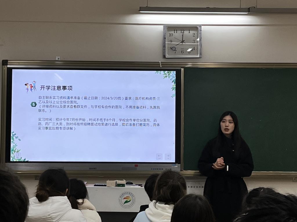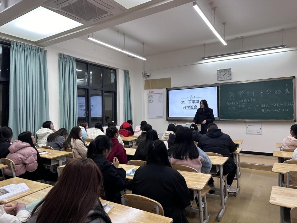 2月25日晚,药品食品学院全体辅导员下班级开展新学期开学第一课。本次主题班会旨在让学生收心,通过摈弃假期中懒散的毛病,摈弃上学期的坏习惯,制定本学期期中目标和实施措施,更快融入新学期的学习生活。
