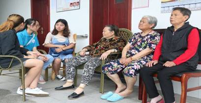 一到红太阳养老院,同学们就热情的与老人们拉起家常,在深入地交谈中,了解到他们最近的生活和身体状况,并进行了预防流行性感冒知识的交流与分享,现场气氛非常融洽。但由于天气原因,社团事先准备的节目无法开展,但这并不能影响同学们服务老人的热情。