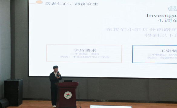 活动在唐虹处长的精彩致辞中拉开帷幕,10支队伍依次分享了项目设计思路、调研过程、调研成果与反思。最终经过激烈角逐,由21级药营专业组成的“Hots”队获得了本次比赛的一等奖。