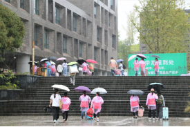 4日天气骤变,上午持续大雨降温,志愿者们一个个浑身湿透,却仍然坚持一趟趟帮新生把大包小包的行李搬运到报到点,转运到学生公寓。药香堂的同学们贴心为新生和志愿者准备暖心姜茶,为高峰期无法去食堂吃饭的志愿者提供绿豆糕等小吃。在两天的迎新工作中,老师和同学们以热情、细致、周到、规范、有序的服务让新同学感受到药品食品学院这个大家庭的温暖。