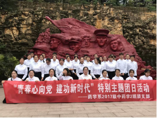 为纪念五四运动100周年,弘扬革命先烈爱国主义精神,5月9日,17级中药学2班团支部全体同学在药学系党支部常务副书记杨光丽同志的带领下,到自贡市烈士陵园参加“青春心向党 建功新时代”特别主题团日活动。药学系主任、党支部副书记钟辉云,团委副书记王庆应邀参加了此次活动。