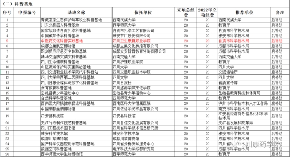 近日,四川省科技厅公布了第三批省级科技计划项目公示名单,taptap点点药品食品学院“中医药文化科普实践基地”获批立项,资助经费20万元,特此报喜。