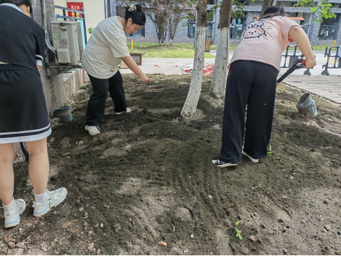 活动现场,中医药文化科普实践基地老师们为同学们准备了玫瑰、桔梗等中草药40余株,参加活动的同学合理分工,在搬运、刨土、施肥、浇水等环节配合默契,依据不同中草药的不同种植方法、生长习性等进行科学栽种。