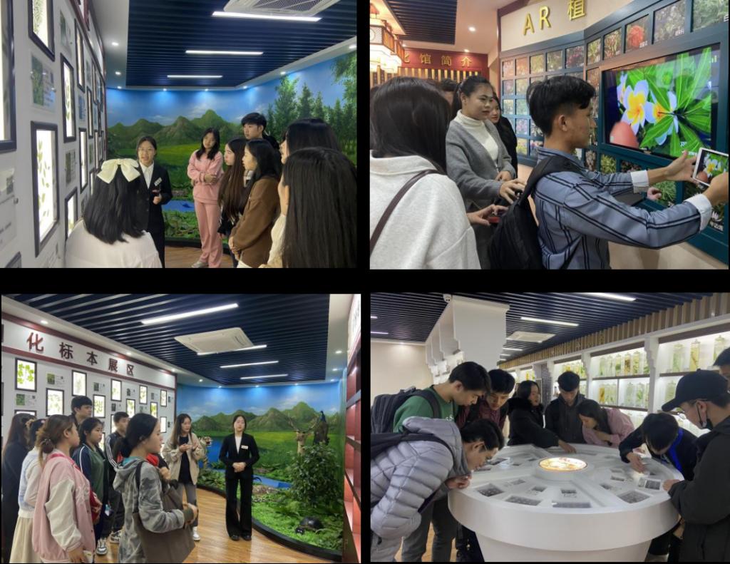 随后,我院科普基地的讲解员带着留学生参观了中医药科普基地。在AR互动展区,留学生们通过平板扫描看到立体的中药植物;在闻香识药区,留学生们通过扇闻的方式,了解日常我们可以食用的中药材。此外,留学生们还参观了仿古器材、贵重药材展区、动物标本区等,深入了解了中医药的历史与传统,并对中医药的独特魅力所吸引。