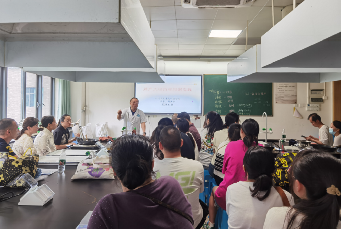 为促进自贡市中医药产业传承创新发展,推进自贡市中医药人才培养,药品食品学院自2023年底开始承办由自贡市中管局主办的中医药特色人才培养项目。教师党支部聚焦高校“五大职能”,以服务经济社会高质量发展为导向,全面调研,科学设置课程体系,广邀省内外技术专家开展自贡市中药种植、炮制技术提升培训。6月20日至6月22日,第三期自贡市中医药人才技能提升班(中药炮制方向)在学校举办,来自全市中药生产企业、医疗机构的中医药技术人员及管理人员共50余人参加了培训。