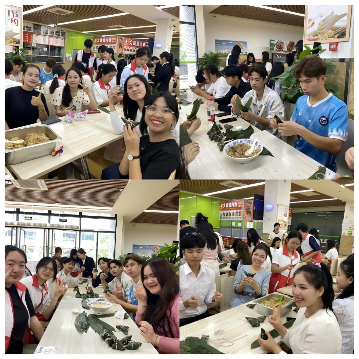 为深化中华优秀传统文化教育,促进校园文化繁荣发展,5月31日,由学校团委主办、药品食品学院团总支承办的"粽香传文化・民族共团圆"端午节主题文化活动在学校第二食堂二楼举行。学校党委委员、纪委书记李雁梅,团委负责人陈余梅,全体老挝留学生和来自全校的200余名师生代表参与了此次活动。