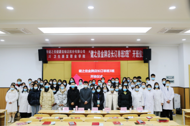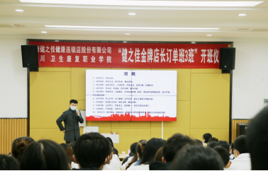 12月9日下午,药学系“健之佳金牌店长订单班3班”开班仪式在1-B301顺利举行。云南健之佳健康连锁店股份有限公司四川分部人事部经理雷家蒙、招聘主管孙玉芬、人事事务主管谭玲、药学系副主任李鹏杰、副主任杨光丽、药学教研室主任赖永莉以及药学系师生共计200余人参加了此次活动。