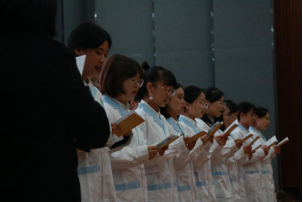 接着,杏林公共关系经理周鑫致辞,他回顾了订单班从一班发展到今天的六班,校企双方都付出了心血和努力,后续的杏林6班也将更专业、精细化的培养。随后,招聘主管吴文琴带领“杏林医药6班”全体学员举行了入班宣誓仪式。宣誓结束后,各小组成员进行了风采展示。
