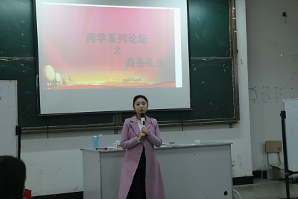 药学系携手恒瑞医药举行新年首次药学论坛新年伊始,1月5日下午,药学系携手江苏恒瑞医药股份有限公司,在学院A315教室举行了新年首次药学论坛——商务礼仪,本次论坛同时也是“恒瑞医药3班”的第三次培训课程。论坛由江苏恒瑞医药股份有限公司成都区学术经理王静主讲,恒瑞公司川滇区人事主管单红梅、药学系主任钟辉云、“恒瑞医药3班”全体学员及药学系部分师生100多人参加。