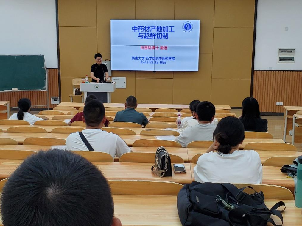 为深入贯彻习总书记关于“促进中医药传承创新发展”的重要指示精神,药品食品学院承办了自贡市中管局的中医药产业传承创新发展项目,推进自贡市中医药人才培养。项目启动以来,药品食品学院教师党支部以服务地方经济社会高质量发展为己任,深入调研与科学规划,精心构建了贴合实际的课程体系,成功举办了多期培训。在9月12日至14日举办的第四期“自贡市中医药人才技能提升班(中药材生产与加工方向)”中,邀请到川渝两地中医药领域的5位专家,包括重庆三峡医药高等学校的冯彬彬教授、成都中医药大学药学院的万丽教授等,吸引了来自全市中药产业链各环节的近50名学员参加了培训。围绕中药材的种植、炮制、质量标准及生产加工技术等主题,以专题讲座、理论授课与案例分析相结合的方式,获得了学员的一致好评。