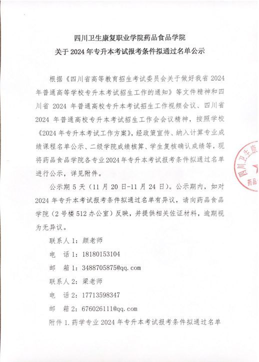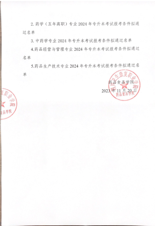 taptap点点体育药品食品学院关于2024年专升本考试报考条件拟通过名单公示