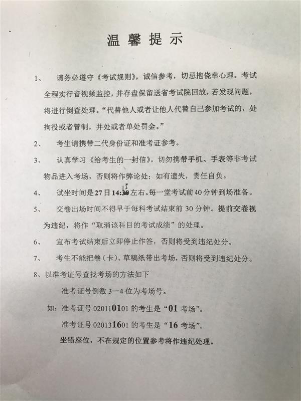 考场试坐时间:2017年10月27日下午