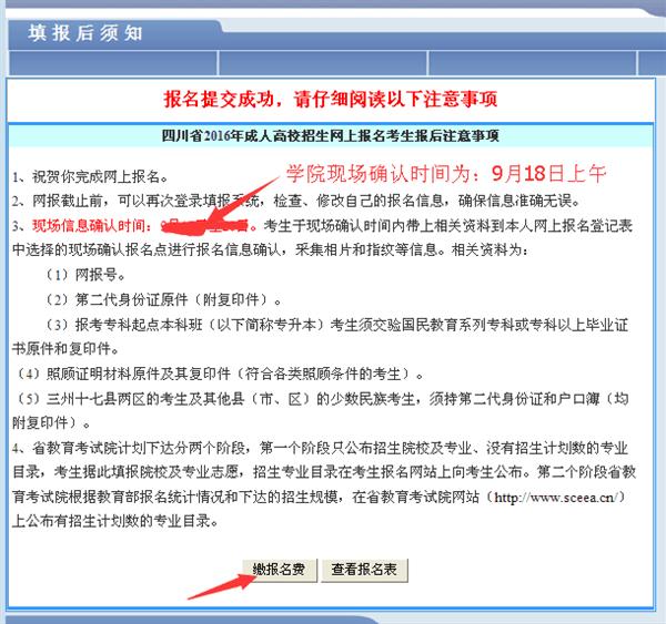 第9步:缴报名费130元,请务必仔细核对各项信息及志愿后方可缴费,一经缴费所有信息无法更改,缴费截止时间为2017年9月12日,逾期未缴费视为报名失败。