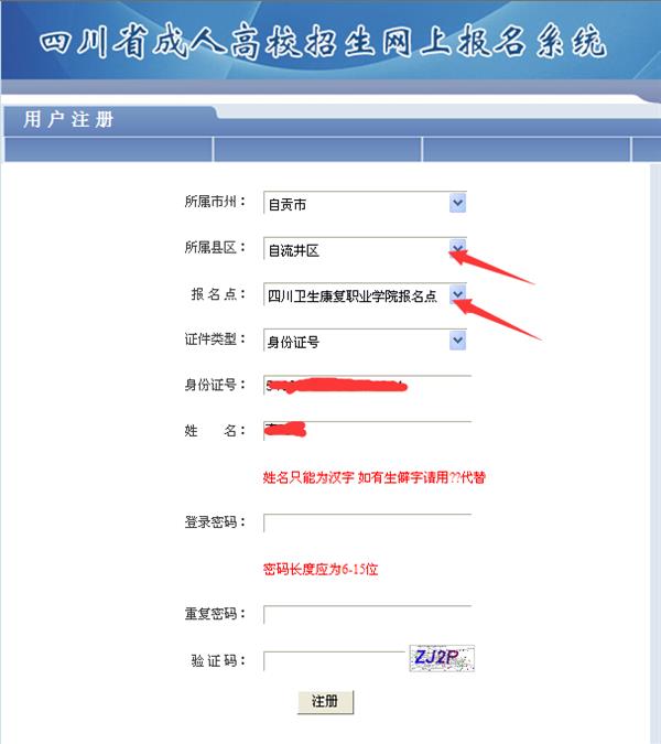 第2步:注册,选择自贡市—自流井区招办—taptap点点体育报名点