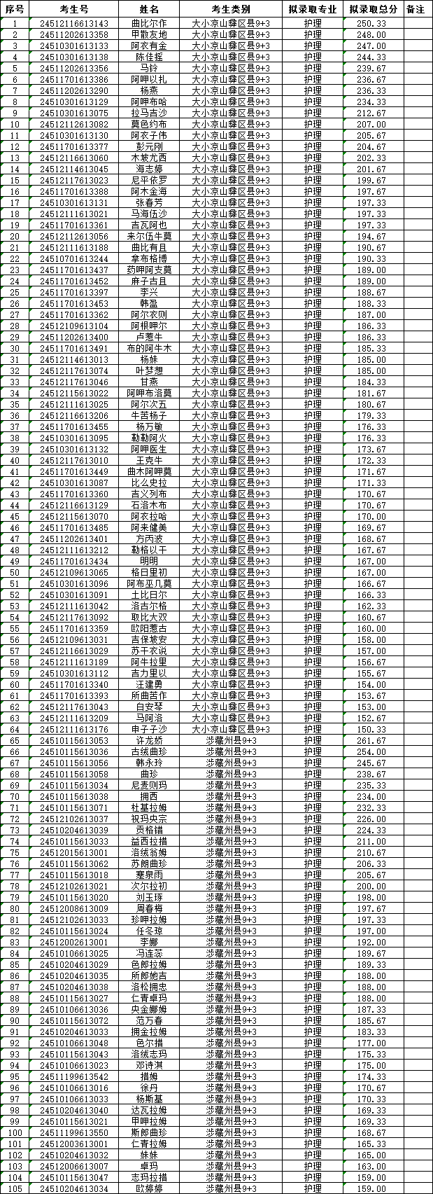 根据《四川省高等教育招生考试委员会四川省教育厅关于印发四川省2024年高等职业学校面向民族地区“9+3”免费教育计划毕业生单独招生工作实施方案的通知》及其补充通知精神,以及《taptap点点体育2024年“9+3”高职单招招生章程》规定,经学院招生工作领导小组研究决定,现将我院2024年“9+3”高职单招考试护理专业各类别拟录取分数控制线(见附件1)及拟录取105名考生名单(见附件2)公示如下,并请考生仔细阅读以下重要事项: