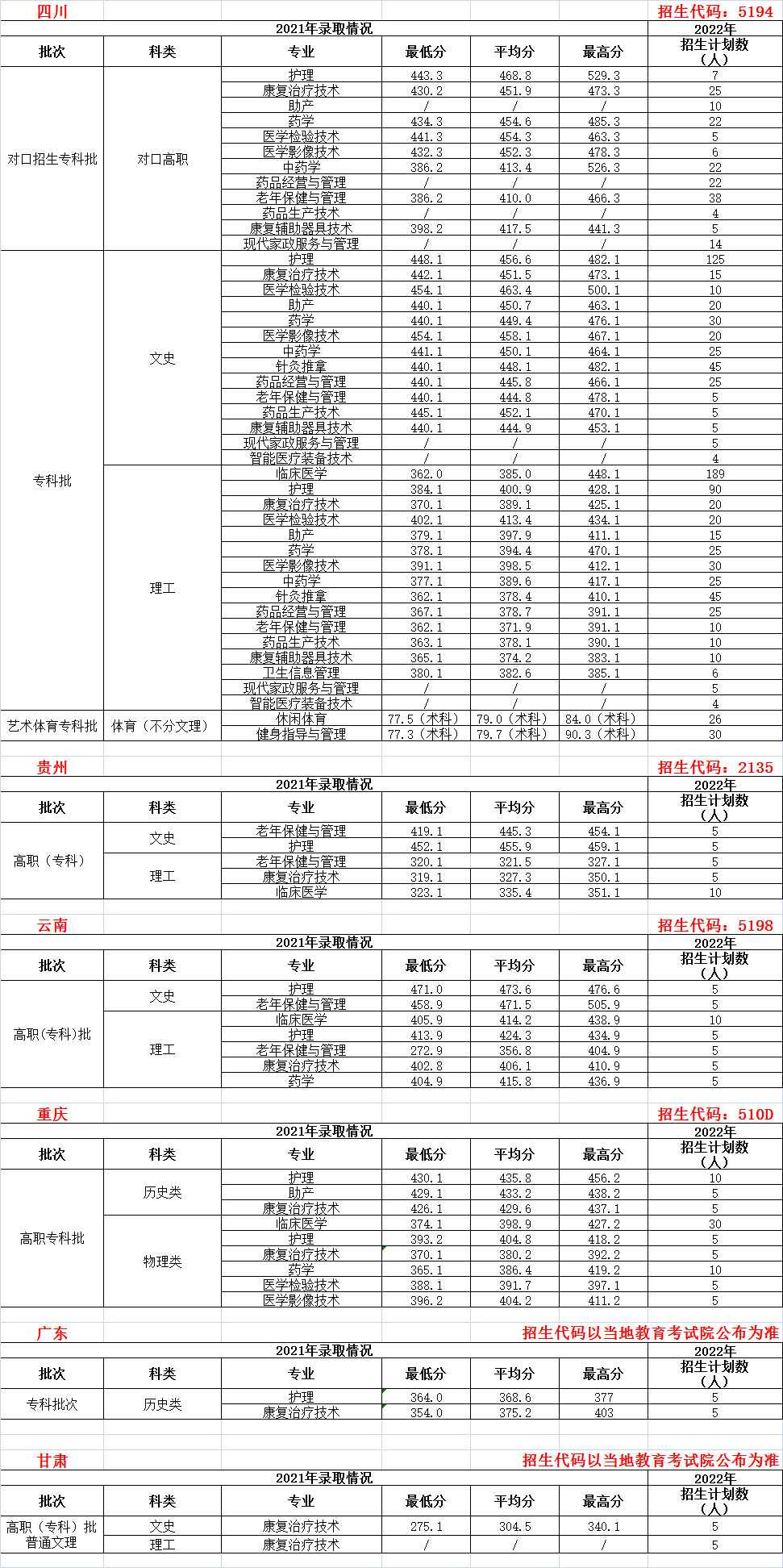 2022年三年制普通专科招生专业计划及2021年录取分数线