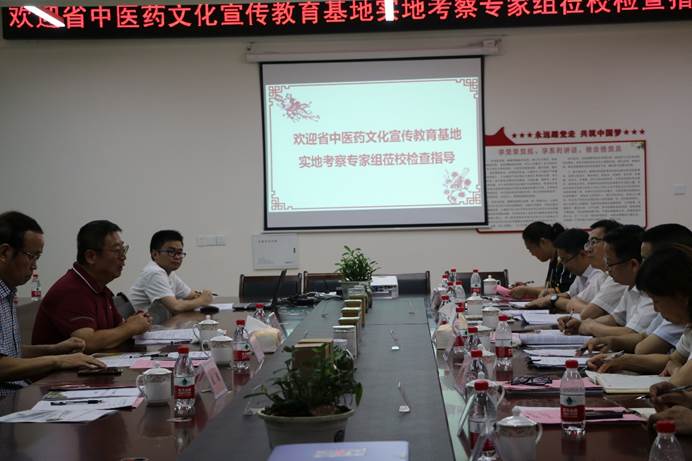 考察组现场参观了基地GMP模拟车间、伪劣药陈列室、中药文化馆、中医药文化宣传长廊、中药学实验实训区、模拟药房、针灸推拿体验区、“药香堂”创新创业工作坊和中药质量控制科普区,观看了基地宣传片和听取了基地文化建设、资金投入、活动成效、工作规划等情况的详细汇报。专家组对基地在中医药文化建设与传承宣教方面所做的工作和产生的成效表示肯定,同时也对基地的建设提出了宝贵意见和建议指导。