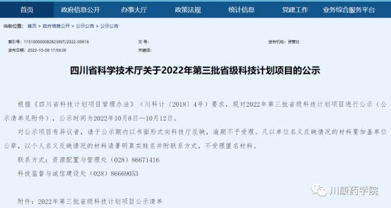 近日,四川省科技厅公布了第三批省级科技计划项目公示名单,taptap点点药品食品学院“中医药文化科普实践基地”获批立项,资助经费20万元,特此报喜。